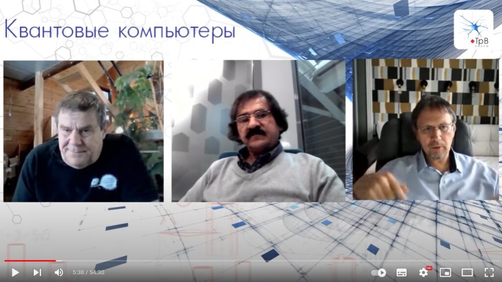 Валерий Рязанов: Теперь, наверное, можно поговорить о том, будет — не будет работать. Квантовый процессор — это реальность. Я говорил, что реализован алгоритм Гровера и другие алгоритмы, но все это на единичных кубитах. Пока рекорд — 53 кубита «Гугла», и надо было еще придумать задачу, которую можно решить на 53 кубитах и показать превосходство над классическими компьютерами. Коллеги придумали довольно необычную задачу — изучали некоторые квантовые распределения, что вряд ли пригодится на практике. По их заявлению, то, что в этом случае было сделано за три минуты, потребовало бы много-много лет на классических компьютерах, но это очень специфическая задача. К сожалению, сделать универсальный квантовый компьютер, который решал бы полезные задачи, пока нельзя, потому что в обычных компьютерах есть всякие методы работы над ошибками — коррекция.