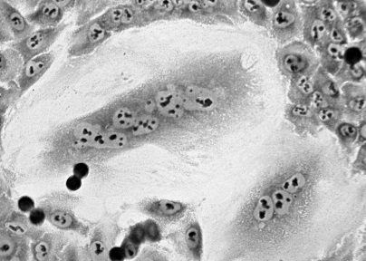 Рисунок. При наступлении благоприятных условий гигантская многоядерная клетка делится и дает начало потомству одноядерных клеток. Фото: © Маргарита Пустовалова
