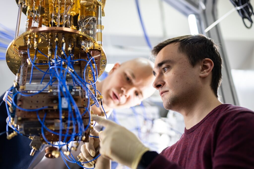 Сотрудники лаборатории искусственных квантовых систем МФТИ Глеб Федоров и Андрей Васенин готовят установку к эксперименту. Фотограф Анастасия Максименко, пресс-служба МФТИ