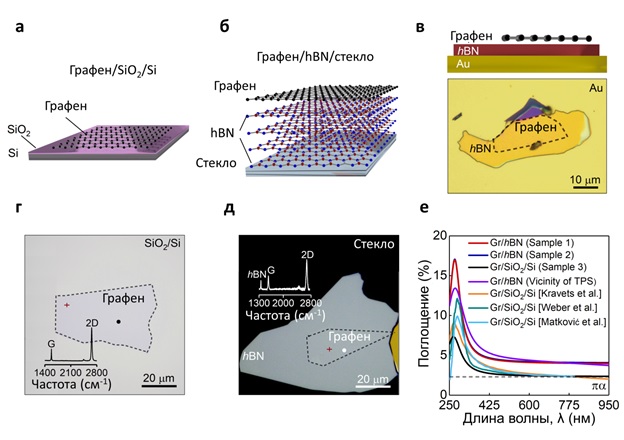 На протяжении нескольких лет коллектив ученых из Центра фотоники и двумерных материалов МФТИ и ИБХФ РАН изучал оптические свойства графена при расположении на различных подложках (кварц, стекло, SiO2/Si). Во всех случаях поглощение было одинаковым. Стоит отметить, что шероховатость таких подложек сравнима с толщиной самого графена, а диэлектрические постоянные значительно ниже по сравнению с таковыми для гексагонального нитрида бора (hBN).