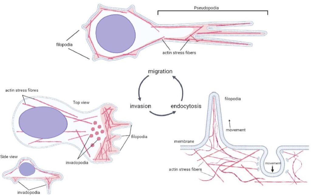 Перестройка цитоскелета в процессах передвижения, внедрения и эндоцитоза. Источник: International Journal of Molecular Sciences