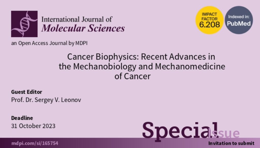«Данный проект реализует одно из ключевых направлений научных исследований нашей лаборатории — “Биофизика рака: последние достижения в механобиологии и механомедицине рака”, которое сейчас стало темой специального одноименного сборника статей в высокорейтинговом International Journal of Molecular Sciences. Я как редактор сборника от имени себя и коллег рад пригласить всех ученых из России и из-за рубежа разместить в нем свои статьи по данной тематике, ранее не опубликованные в других изданиях», — заключает Сергей Леонов.