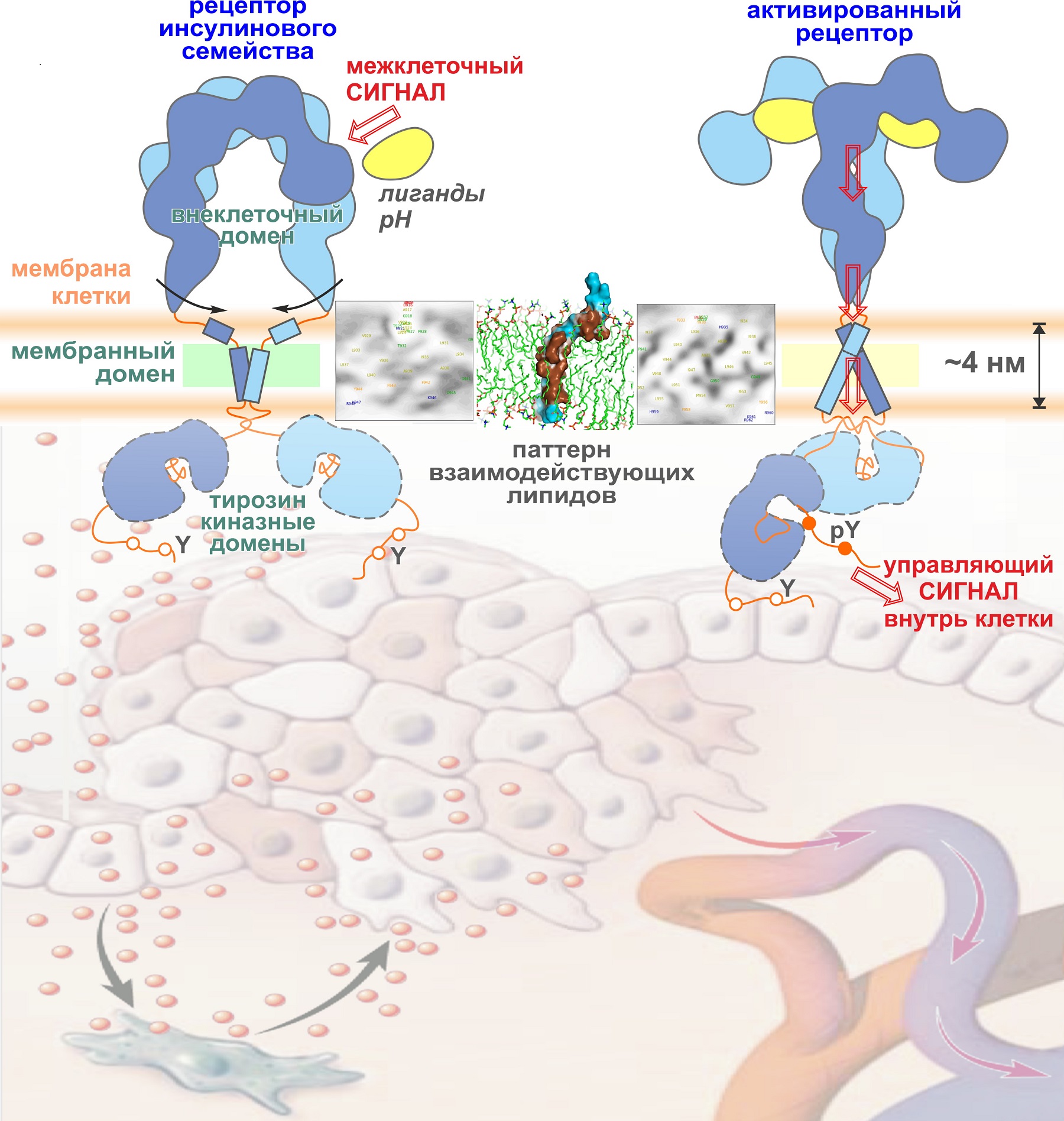Группа рецепторов инсулина играет важную роль при передаче межклеточных биохимических сигналов через мембрану клетки (толщиной всего 4 нм) для многих физиологических процессов. Аномальная активность инсулиновых рецепторов может . быть сигналом патологий человека, включая диабет, рак и нейродегенеративные заболевания, такие как болезнь Альцгеймера. Точные знания о молекулярных механизмах работы этих рецепторов в клеточных липидных мембранах и их «поломках» дадут ключ к созданию более совершенных целенаправленных лекарств.
