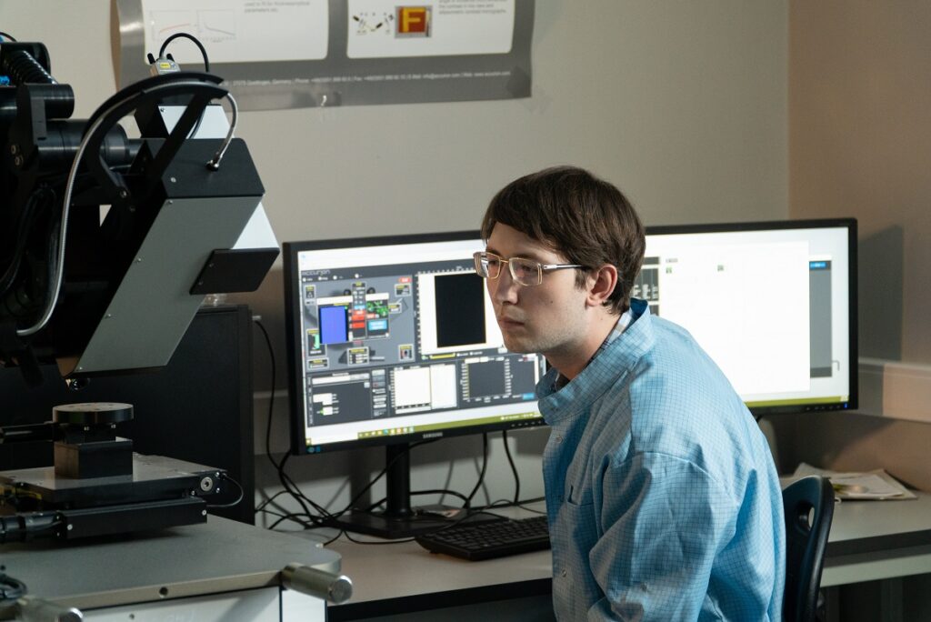 Георгий Ермолаев за работой в лаборатории нанооптики и плазмоники МФТИ
