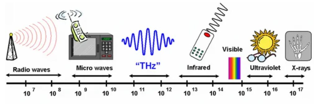 Расположение терагерцового диапазона на шкале электромагнитного излучения