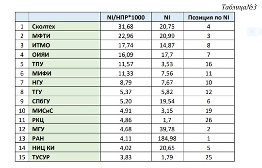 На основании данных рейтинга Nature Index и статистических данных от организаций можно рассчитать удельный рейтинг научной эффективности, приведенный к численности научно-педагогических работников.