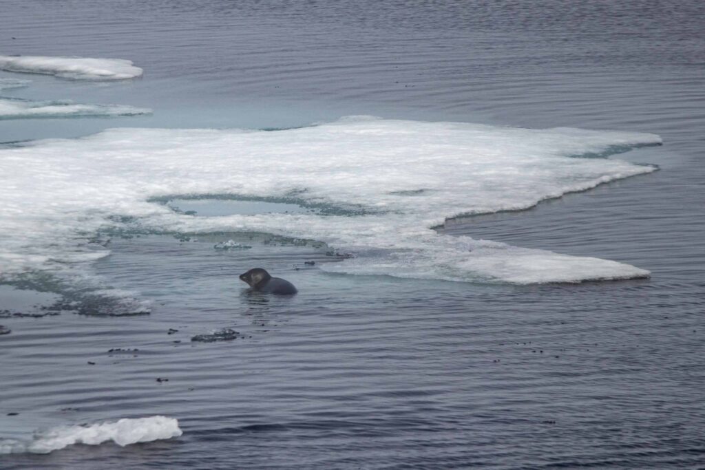 При отходе от вихрей экспедицию провожал один из представителей Арктики — морж.