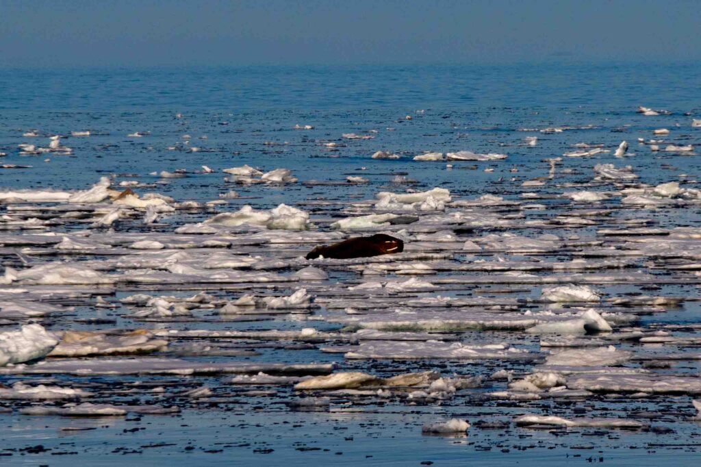 Еще прошедший день порадовал членов экспедиции невероятной красоты гало, игривыми морскими котиками и парочкой моржей.