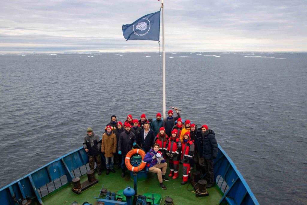 Ночью, около 2:30, НИС «Дальние Зеленцы» достигло самой северной точки экспедиции. Несмотря на столь поздний час, все члены экипажа вышли на борт судна, чтобы увидеть Землю Франца-Иосифа и сделать коллективное фото.