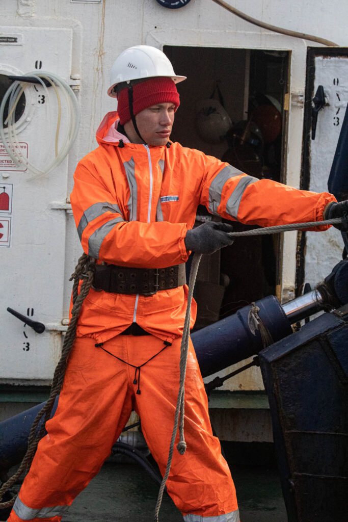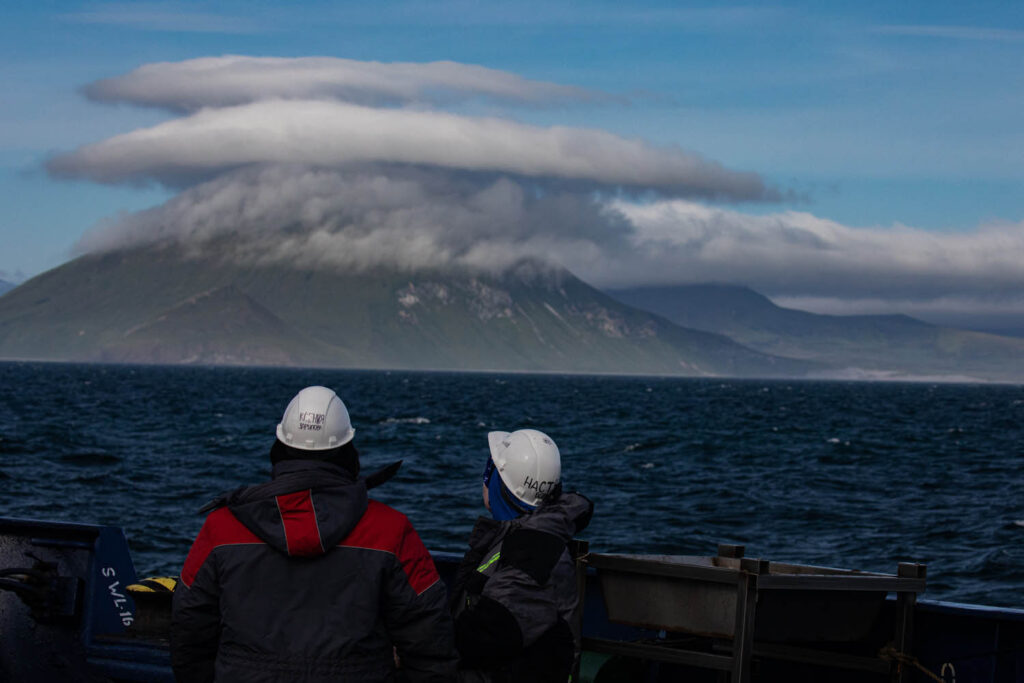 Последний день в Тихом океане, дальше — Охотское море. Активный рабочий день у команды бентоса. С батометров розетты собираются пробы воды на фитопланктон. Вода в батометры берется с тех горизонтов, где зафиксировано высокое содержание хлорофилла а.