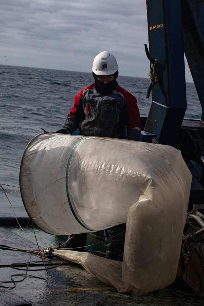 Вначале — забор воды из разных горизонтов посредством батометров на розетте. Затем отбор осадка Boxcorer’ом, отбор воды поверхностного горизонта из проточной системы, а далее — замер атмосферного воздуха. Из проб воды и осадка выделяется газовая фаза, ее анализируют на хроматографе методом headspace. Установлен термосоленометр для измерения температуры и солености забортной воды, Picar для оценки содержания парниковых газов в атмосфере. Производится замер интенсивности солнечного излучения и скорости ветра при помощи радиометра и ультразвукового анемометра.