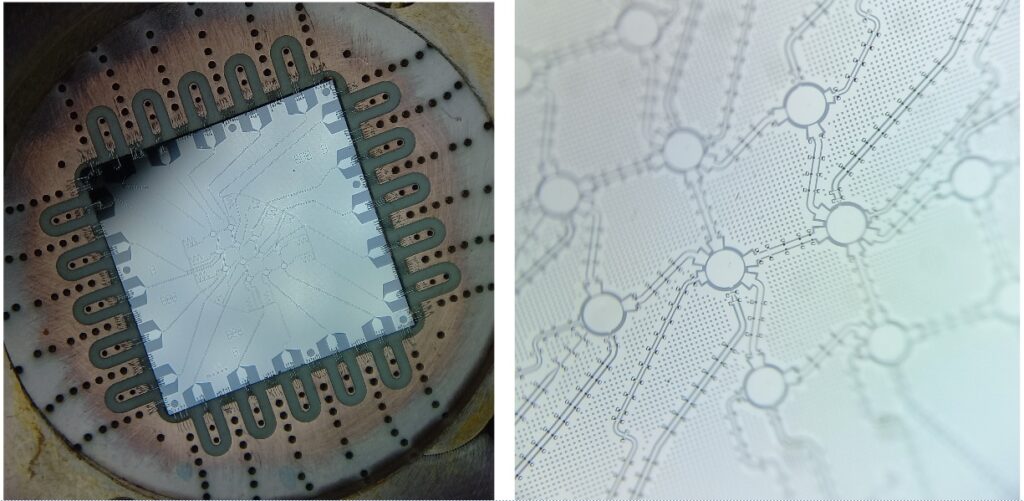 «Для нас это очередной этап. На Физтехе уже есть хорошо отлаженная технология, с помощью которой мы производили 5-кубитные и 8-кубитные квантовые интегральные микросхемы. Это сам по себе сложный процесс, использующий, в частности, электронную литографию. Но на этот раз нам пришлось сильно изменить технологические чертежи, так как вместо линейной мы использовали двумерную архитектуру схемы», — рассказал Глеб Федоров, старший научный сотрудник лаборатории искусственных квантовых систем МФТИ.