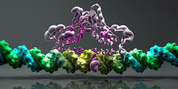 Модель взаимодействия транскрипционного фактора Brachyury с ДНК. Иллюстрация Phantatomix.