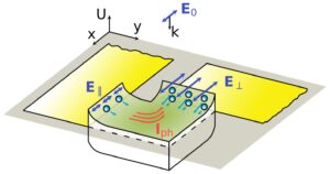 «Мы пришли к идее создания такого прибора в несколько шагов, — рассказывает Дмитрий Мыльников, старший научный сотрудник лаборатории оптоэлектроники двумерных материалов МФТИ. — Сначала мы сделали теоретическую работу по моделированию рассеяния света на границе металла и двумерного материала. Как второстепенный эффект мы обнаружили усиление поля на границе раздела, которое зависело от поляризации падающей волны. Далее мы обнаружили этот эффект экспериментально в приборе на основе графена с обыкновенной формой контактов при неоднородной засветке. И только потом мы догадались, что эффект может быть использован для генерации фототока, если контакты к материалу будут иметь необычную форму».