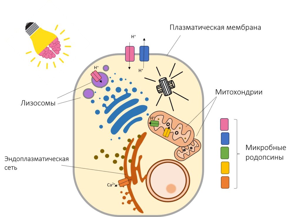 Клетка, органеллы и работа микробных родопсинов. ©Анастасия Власова
