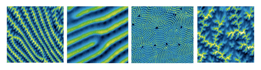 Например, в сверхпроводниках возникают структуры, в которых области без магнитного поля сосуществуют с областями, где магнитное поле образовывает решетки вихрей. Однако в сверхпроводящей пленке могут возникнуть совсем экзотические паттерны, похожие на распределение заболевших в пандемию ковида.