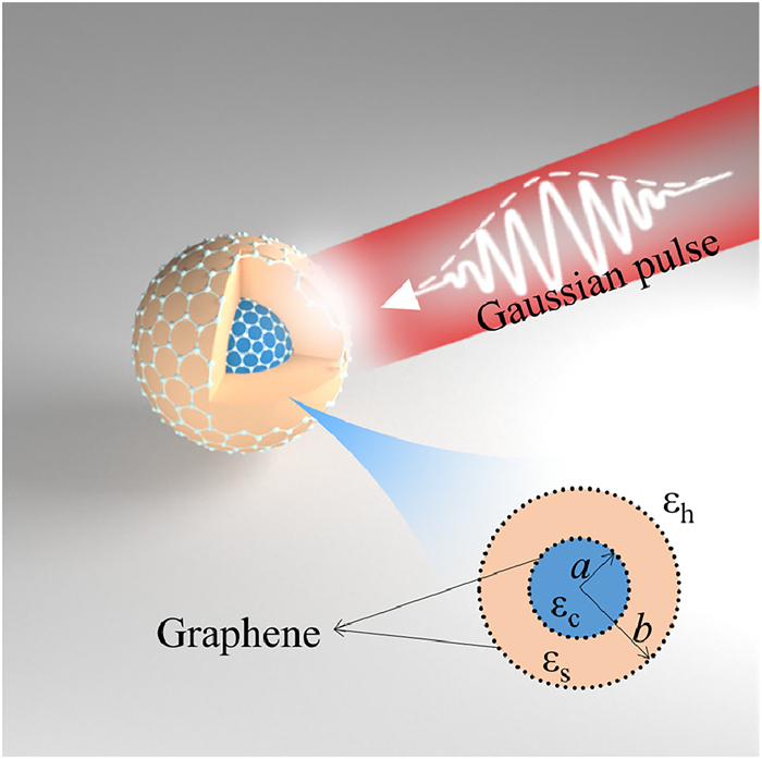 Рисунок 1. Наночастица с графеном, которую облучают электромагнитным импульсом. Источник: Journal of Applied Physics