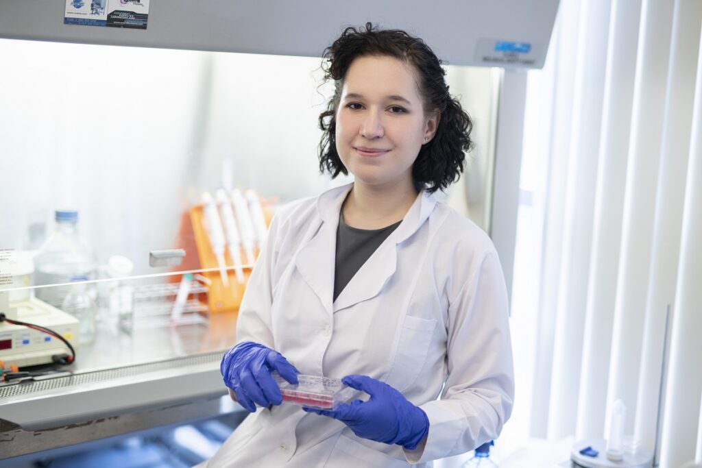 Научный сотрудник лаборатории экспериментальной и клеточной медицины МФТИ Алерия Аитова разработала универсальную методику получения и культивирования линий мезенхимальных стволовых клеток, в том числе пациент-специфичных, из различного костного материала. Инновационность методики заключается в том, что жизнеспособные мезенхимальные стволовые клетки выделяют одновременно из двух типов материала человека — костного мозга и костной ткани. Технология может быть использована в качестве дополнения клеточно-заместительной терапии при лечении различных заболеваний.