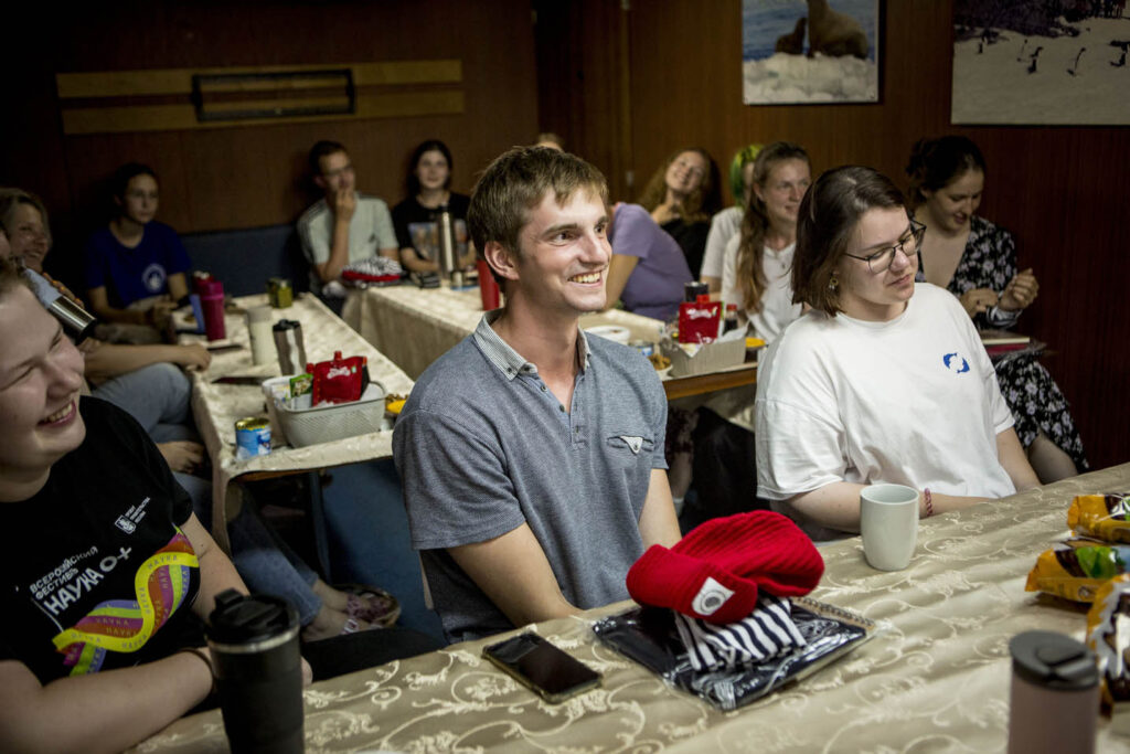 И правда! Ребята, работающие на палубе, первыми открыли счёт увиденных китов и тюленей. Спросите студента БФУ им. И.Канта Германа Волкова из отряда гидробиологии — он покажет вам видео китёнка, сверкающего в прозрачной воде.