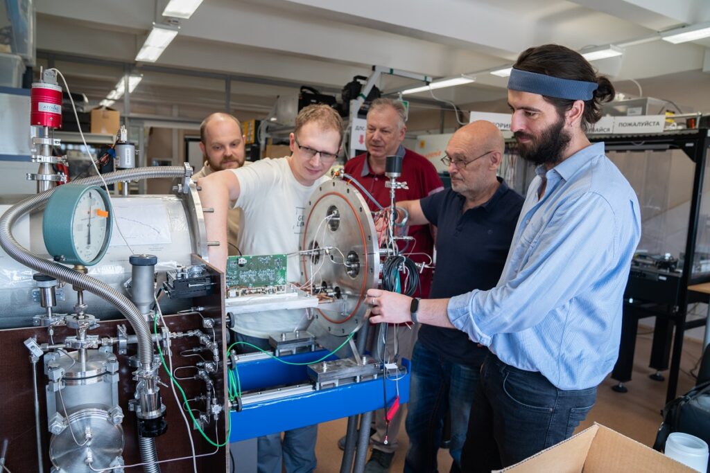 Разработчики спектрометра «ДЛС-Л» вынимают прибор из вакуумной камеры после проведения испытаний. Фото: Анастасия Каплина