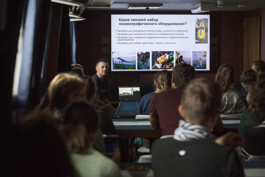 «Девять месяцев дрейфовал П.П. Ширшов под руководством Папанина, и сделали они 38 станций» — вспомнил на одной из лекций Алексей Зимин, руководитель отряда мезомасштабной гидрофизики. «Каждый из нас ведёт свои исследования, но все мы стоим на плечах научных гигантов и их прежних открытий», — добавляет биолог Илья Манухов. Под рассказы о прошлом и настоящем океанологии мы начинаем переход из Карского моря в море Лаптевых. Это экватор нашей экспедиции, и за кормой у нас уже более 100 станций.