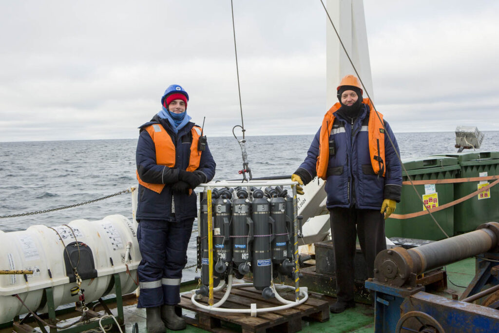 «Это одна из наших задач в рейсе — изучение водообмена между глубоководными желобами в Карском море, а именно определение возможности затока атлантических вод из жёлоба Святой Анны в жёлоб Воронина, — рассказывает Александр Осадчиев, начальник отряда крупномасштабной гидрофизики. — Карское море — достаточно близкое к нам, но из-за сложной ледовой обстановки и донного рельефа изучено недостаточно, даже хорошей карты течений нет. А мы её потихоньку уточняем, наши измерения впервые показали существование периодического затока тёплых и солёных атлантических вод из жёлоба Святой Анны в Новоземельский жёлоб и жёлоб Воронина Карского моря. Характеристики этих вод сильно отличаются от местных, поэтому также могут сильно повлиять на развитие планктона и более крупных животных».