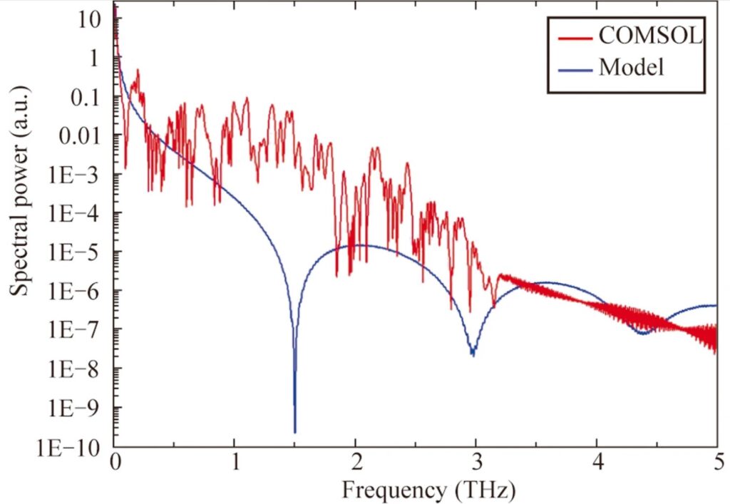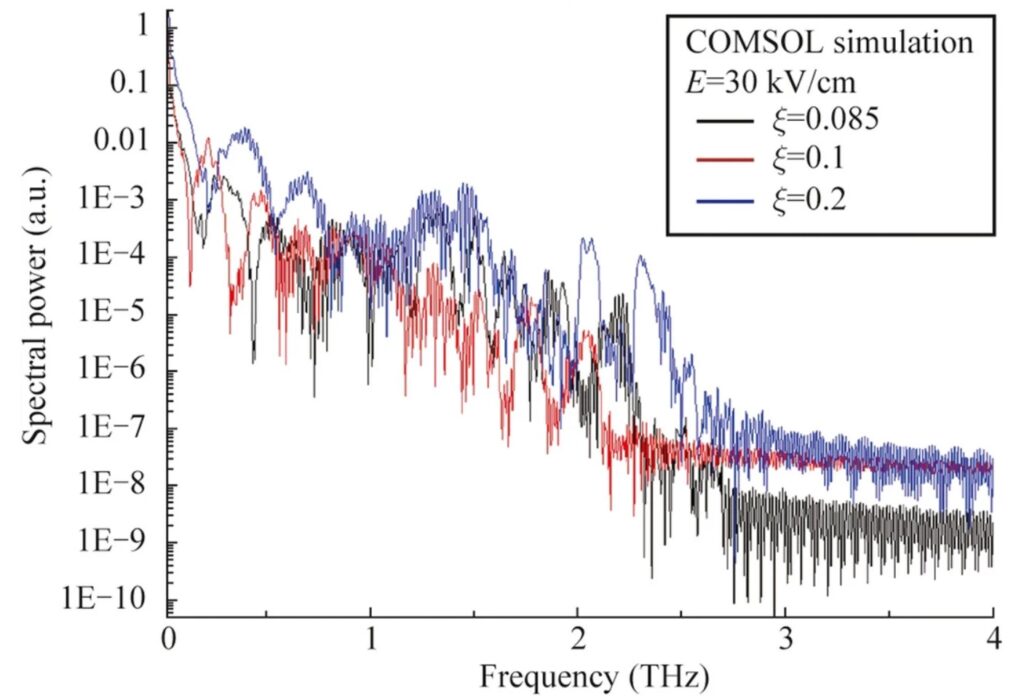 Рисунок 6. Результаты численного моделирования спектров ЭМИ в COMSOL Multiphysics. Источник: Frontiers of Optoelectronics