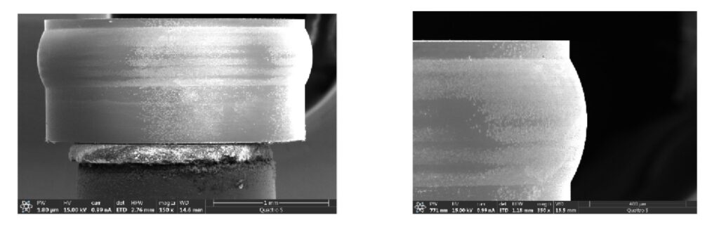 Рисунок 1. Изображения германиевого микрорезонатора с режимом шепчущей галереи после процесса обточки, полученные со сканирующего электронного микроскопа. Источник: журнал Optics Express