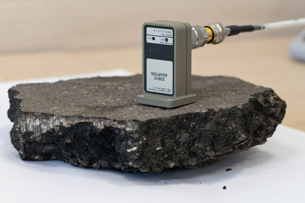 Тестирование образца асфальтобетона на внутренние дефекты в лаборатории. Фото пресс-службы МФТИ