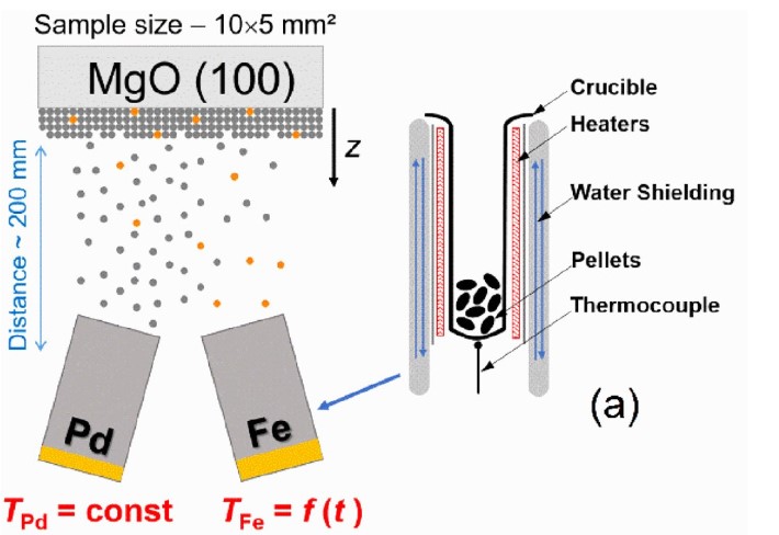 В процессе осаждения контролировалась температура тиглей, чтобы регулировать скорость осаждения атомов железа, достигая с помощью этого нужной скорости осаждения.