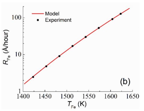 Рисунок 2. Зависимость скорости осаждения железа от температуры. Источник: Journal of Vacuum Science & Technology A.