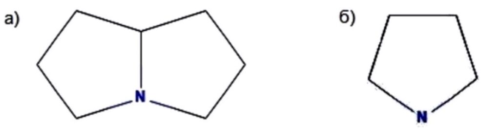 Рисунок 1. Структурные формулы пирролизидина а) и пирролидина б). Источник: PubChem.