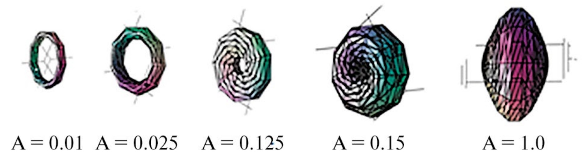 Рисунок 4. Тороидальные равновесные плазменные конфигурации при разных значениях магнитного потока. Источник: Астрономический журнал РАН.