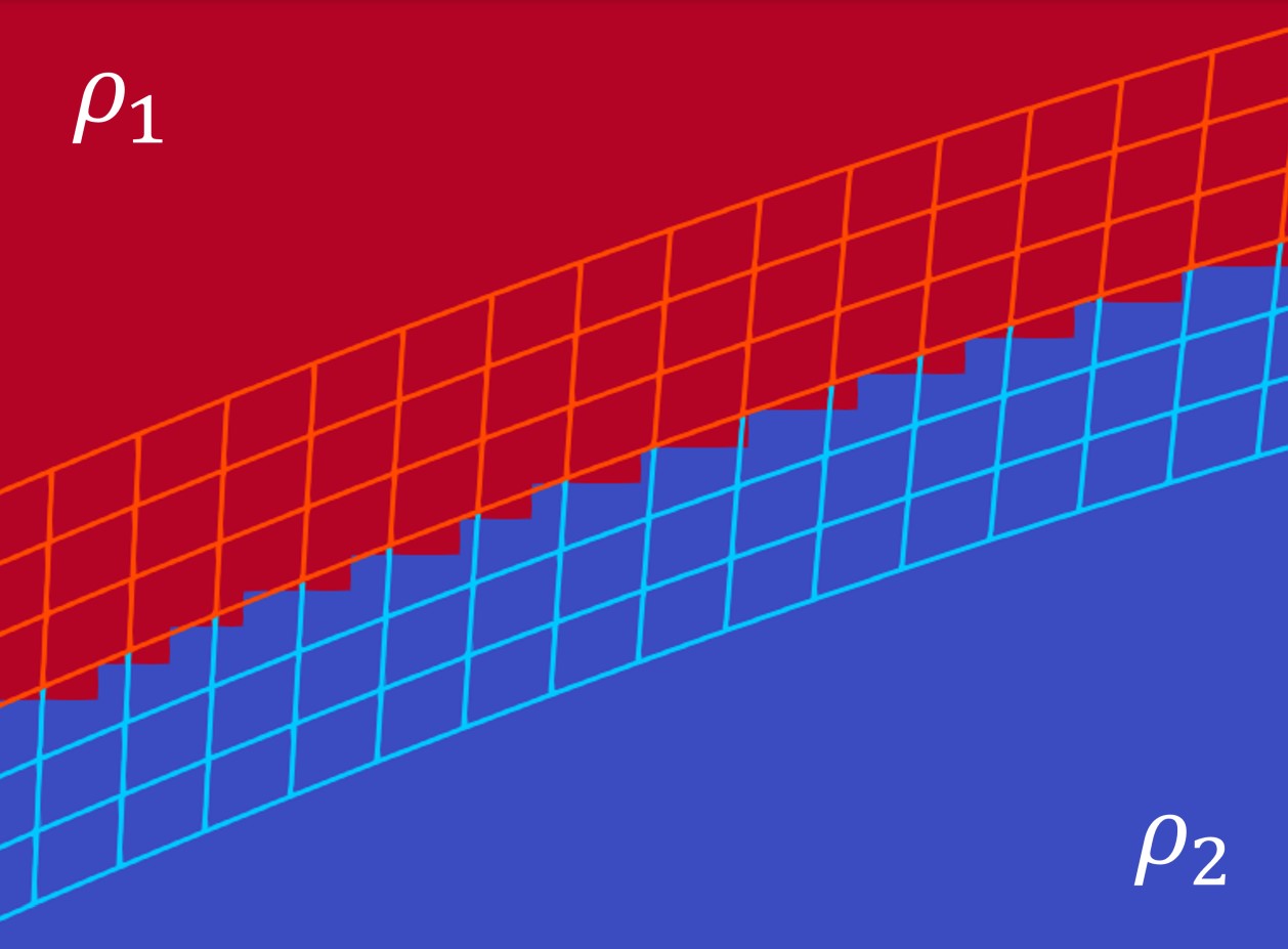 Рисунок 1. Химерная сетка в контактной области двух разных материалов. Источник: Lobachevskii Journal of Mathematics.