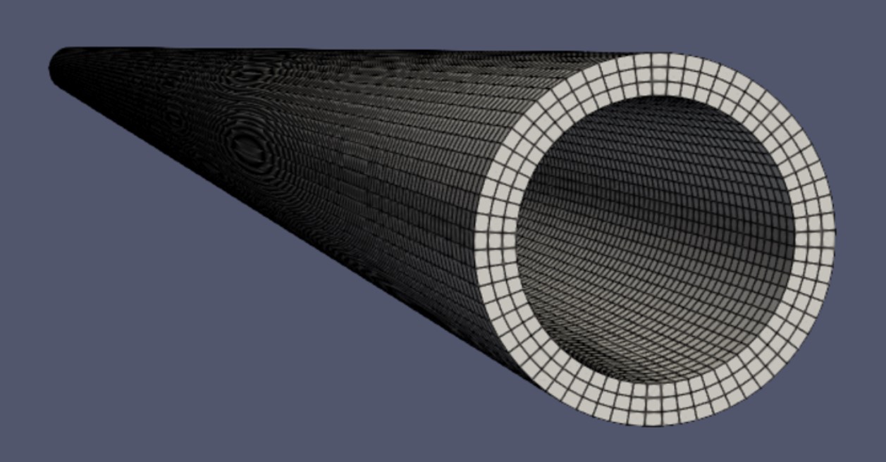 Метод учитывает более сложные формы волокон за пределами упрощенной цилиндрической формы. Граничное условие адгезии задается на интерфейсе внешней и внутренней химерных сеток, определяя границу волокна. Условия отсутствия отражения были заданы на границах вычислительной области.