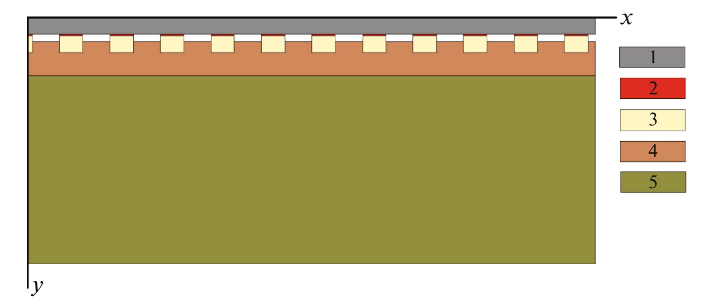 Рисунок 1. Балластная железная дорога: 1 — рельс, 2 — демпферы, 3 — шпалы, 4 — балласт, 5 — земляное полотно. Источник: Lobachevskii Journal of Mathematics.