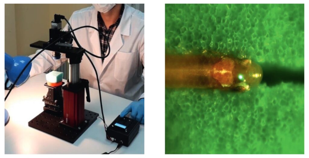 Общая установка (слева) для лазерной индукции нейротравмы у взрослых зебраданио (справа). Источник: Российский физиологический журнал им. И. М. Сеченова