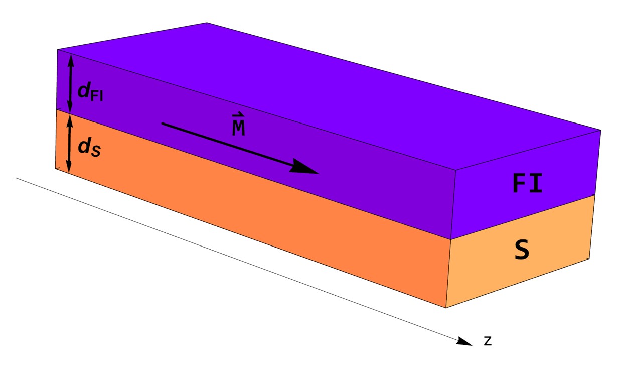 Рисунок 1. Эскиз тонкопленочного бислоя ферромагнетик-сверхпроводник. Источник: Physical Review B.