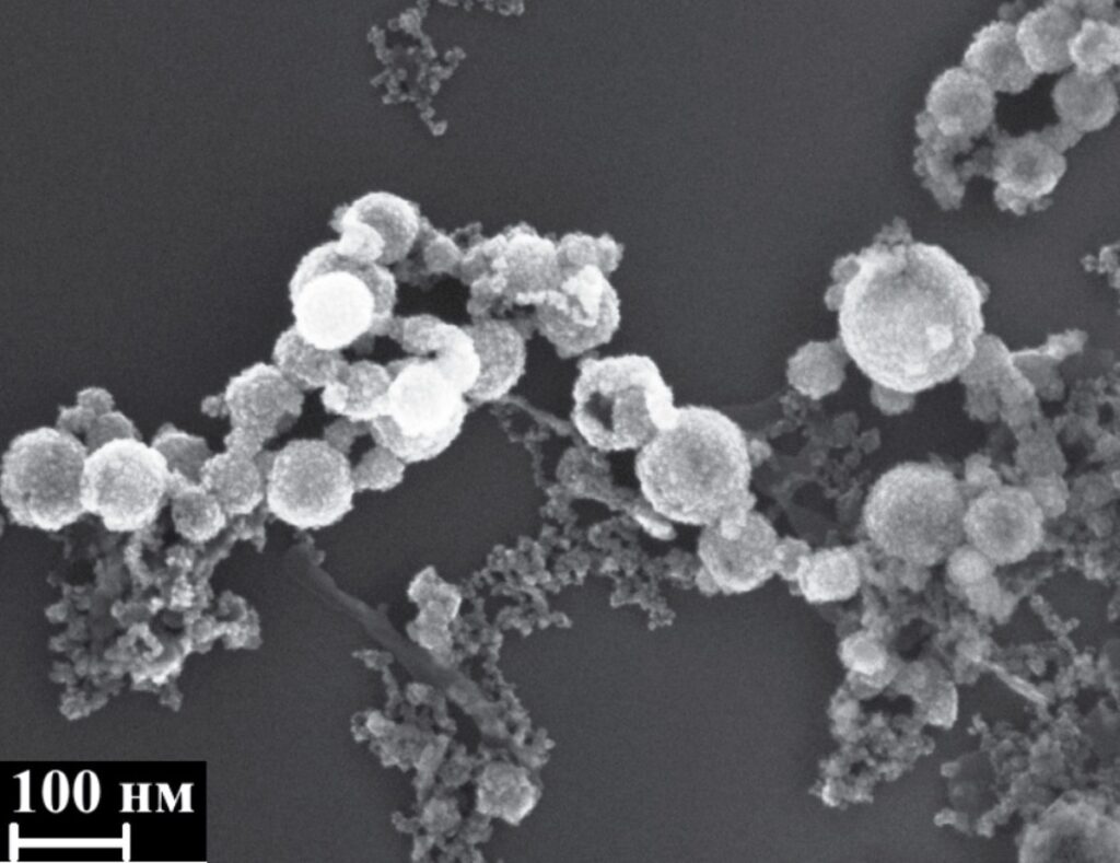 Рисунок 2. РЭМ-изображение наночастиц, полученных методом лазерной абляции пленки кобальта толщиной 250 нм. Источник: журнал «Известия РАН. Серия физическая».
