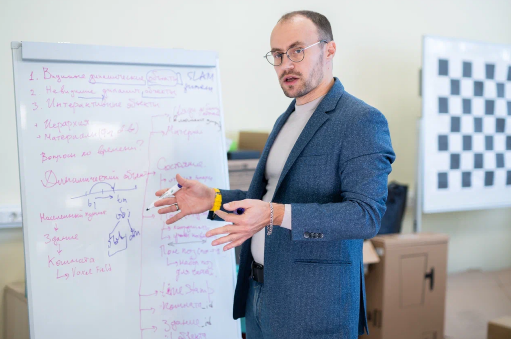В частности, мы стремимся улучшить работу сенсоров и датчиков, которые принимают и передают данные от окружающей среды. Одно из направлений, в котором наша команда хорошо продвинулась, это разработка систем компьютерного зрения с помощью обычных камер — без дорогих лазерных лидаров. Мы показываем, как эффективно решить такие задачи. Причем в процессе навигации роботы обучаются, и полученный опыт используют уже в других незнакомых помещениях. Это важно, когда в памяти робота нет готовой карты, но требуется, чтобы он быстрее изучил пространство.