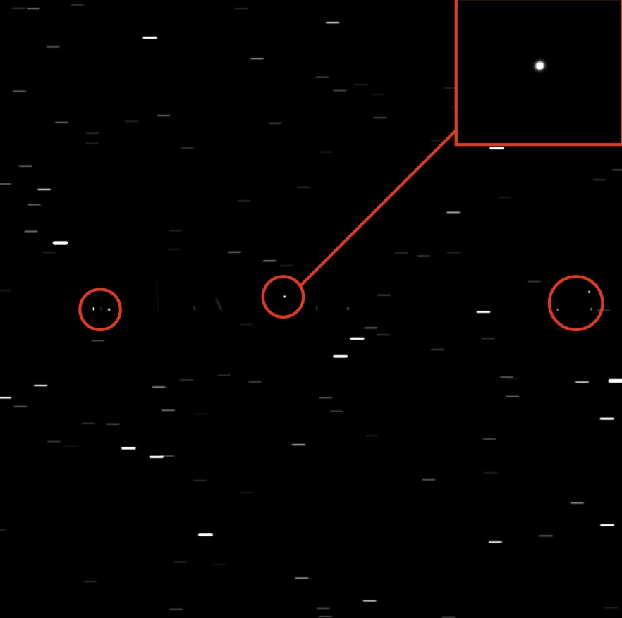 Авторы исследования разработали программу, которая реализует описанные процессы. Результаты работы этой программы позволяют получить изображение космоса при заданных условиях. Например, на одном из изображений видно, как телескоп остается неподвижным относительно Земли, а спутники на геостационарной орбите, соответственно, остаются в тех же положениях на экране. Движущиеся звезды становятся видимыми в виде небольших линий, отражая их траектории на небе.