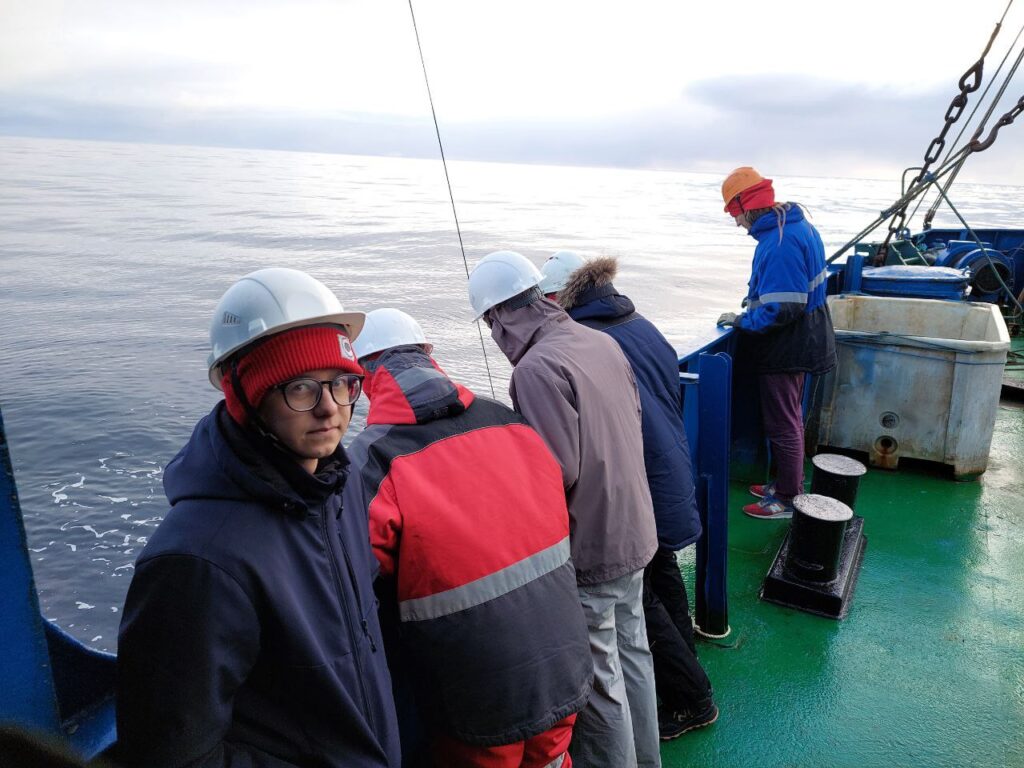 Студенты в экспедиции Плавучего Университета в Арктике участвуют в забортных работах. Фото: Полина Кривошлык, инженер-исследователь Атлантического Отделения Института Океанологии РАН