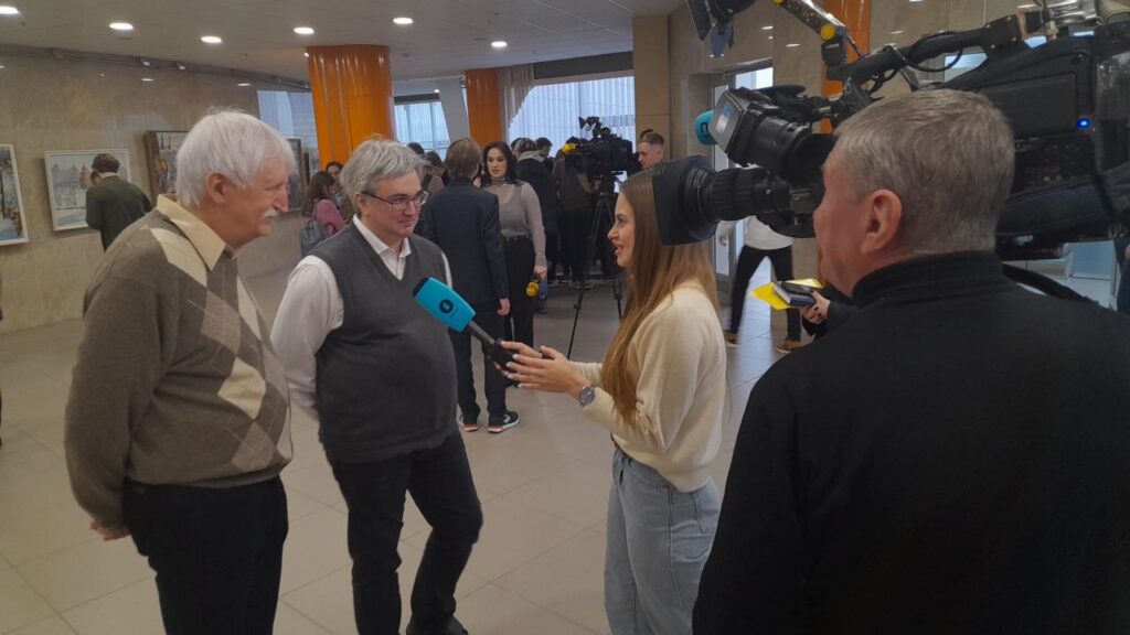 Лекторы из Московского Физтеха дают интервью минским журналистам. Фото Мария Смирнова.