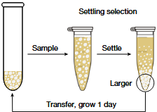 Дрожжи в эксперименте отличаются от обычных пекарских тем, что у них отключён ген ACE2, связанный со способностью отрываться от материнской клетки после деления. Таким образом экспериментальные дрожжи скоро формируют звёздообразные скопления, которые исследователи называют «снежинками». Дрожжи выращивались в трех различных метаболических условиях: миксотрофных (PM), анаэробных (PA) и аэробных. Ежедневно проводился отбор на быстрое оседание, чтобы отделить тяжёлые кластеры от лёгких отдельных клеток.