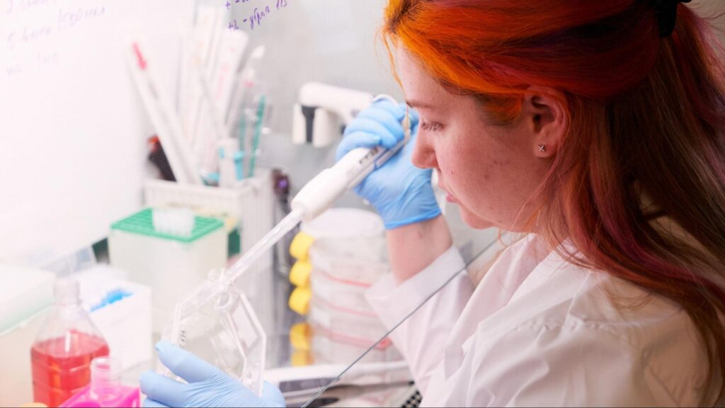В первые дни весны 2025 г. в московском кинотеатре “Иллюзион” состоялась премьера показа документального фильма «Виктория» о работе ученых, стремящихся найти лекарство от страшного недуга — рака. В центре картины — упорная и кропотливая ежедневная работа исследователей лаборатории биохимических исследований канцерогенеза ИББ МФТИ и будни заведующей лабораторией Виктории Шипуновой. Корреспондент “ЗН” поговорила с Викторией о научной работе и о фильме, который стал удивительным открытием не только для зрителей, но и для самой героини.