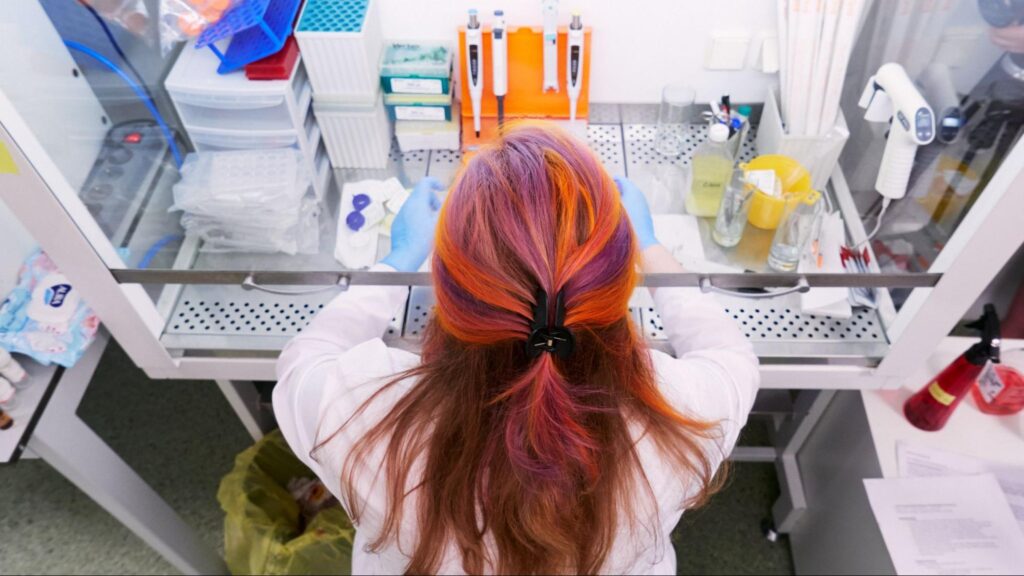 Еще важно отметить, что у нас очень красивые интерьеры в лаборатории. Я всегда стремилась сделать так, чтобы все необходимое было не просто функционально, но и красиво: у нас разноцветные штативы, яркие приборы. Например, мы никогда не закупали, при прочих равных, одинаковые серые держатели для автоматических дозаторов. Наша лаборатория всегда яркая — розовая, зеленая, оранжевая. Думаю, это тоже сыграло свою роль в съемочном процессе: фильм начинается с показа под вариацию на тему танго наших разноцветных пробирок и пипеток, и это, мне кажется, очень красиво получилось.