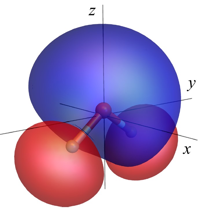 Рисунок 1. Невозмущенная ионизирующая орбиталь трехатомной молекулы. Источник Physical Review A.
