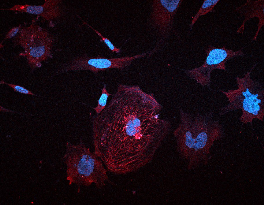 Рисунок. Конфокальное изображение дифференцированных в кардиомиоциты клеток пациента