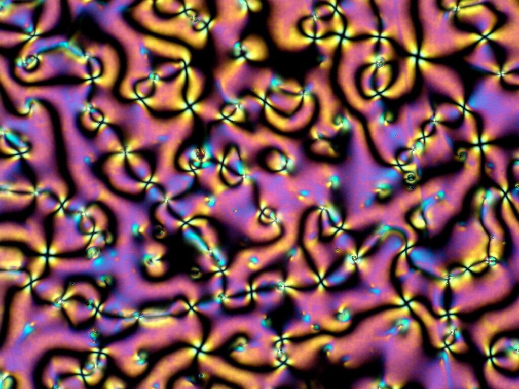 Рисунок. Шлирен-текстура жидкокристаллической нематической фазы. Источник: Alternator