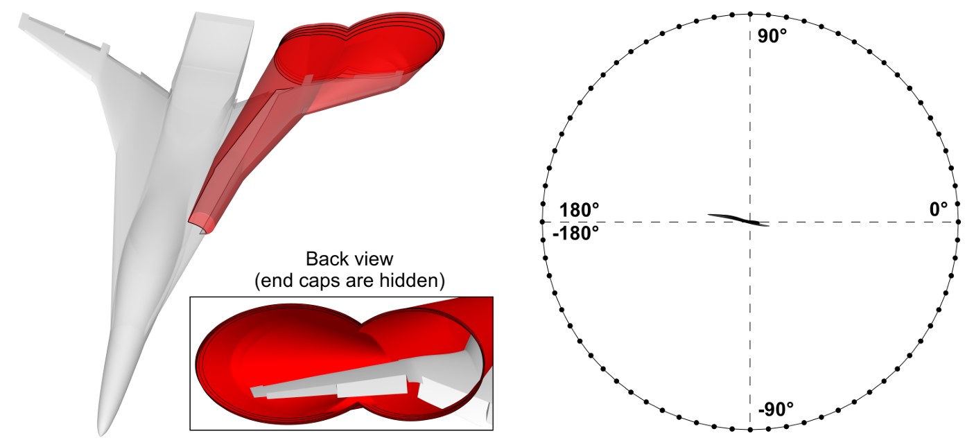 Рисунок 3. Поверхность Фокса Уильямса–Хокингса и точки дальнего поля, используемые для расчета диаграммы направленности шума. Источник: журнал Supercomputing Frontiers and Innovations
